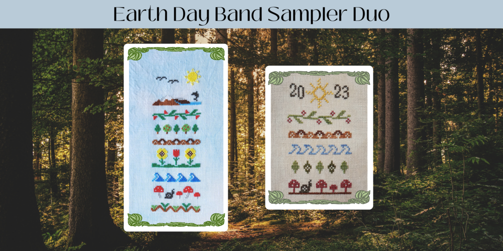 Two digital (PDF) cross stitch patterns celebrating Earth Day (one of which was initially included in the Earth Day bundle from the Stitchers Collective).